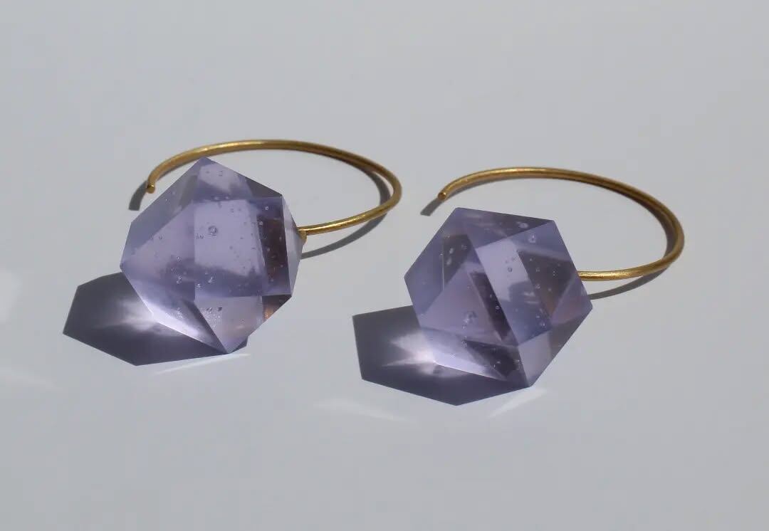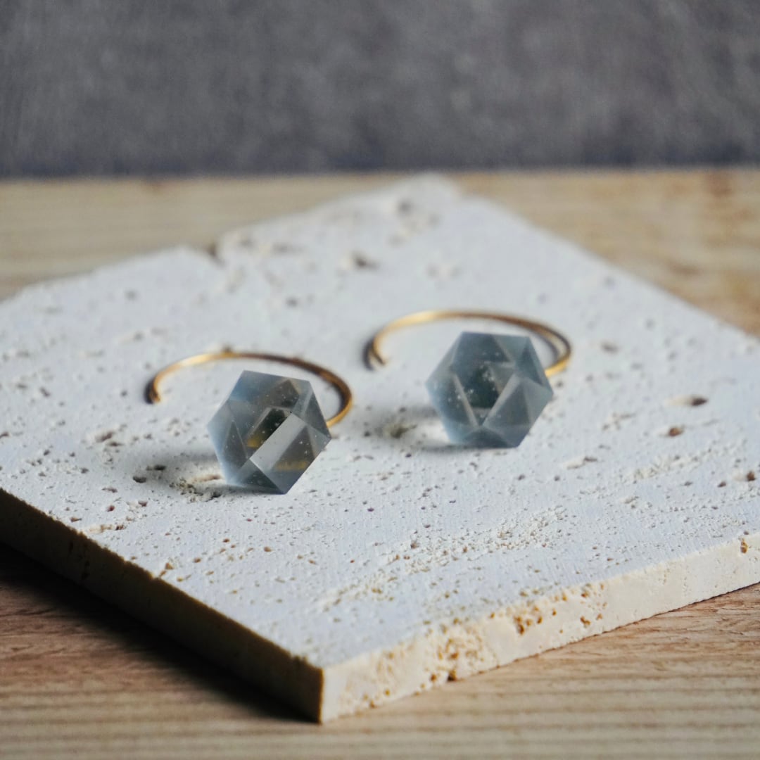 一面ずつ削り出した多面体のガラスは光を複雑に捉え様々な表情を見せます。