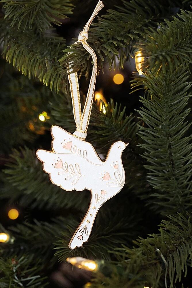 エナメルで制作され、きらめく金メッキ仕上げが施されたこの優美な鳩は、繊細な手描きのディテールが上品さと深みを兼ね備えています。静けさと魅力でクリスマス装飾を引き立てる完璧な一品です。