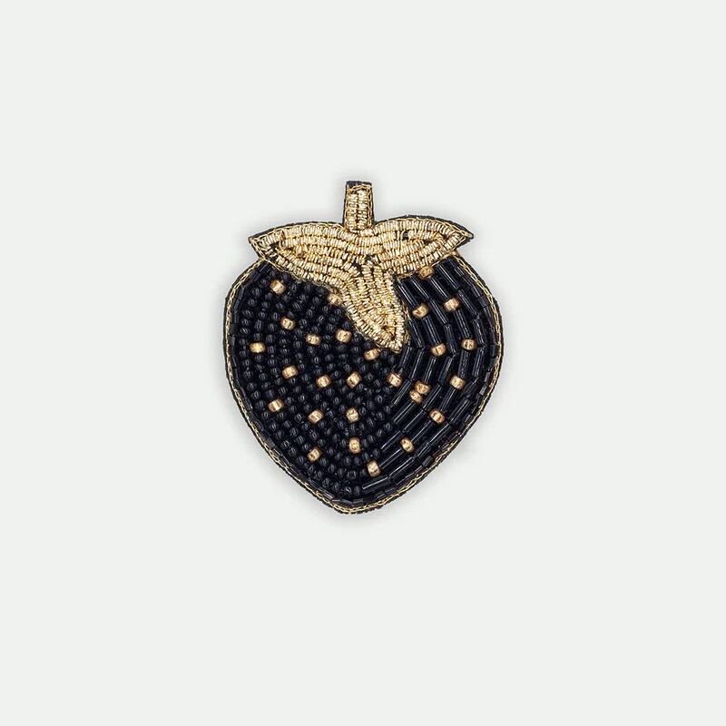 All The Ways To Sayのストロベリーブローチはインドの職人の手によって愛情を込めて刺繍されています。金色のカネティールワイヤー、きらめくビーズ、繊細なストラスを組み合わせ、遊び心と上品さを兼ね備えたデザインです。ゴールドのディテールが施された紙製ハードケースとコットンポーチに入れてお届け。